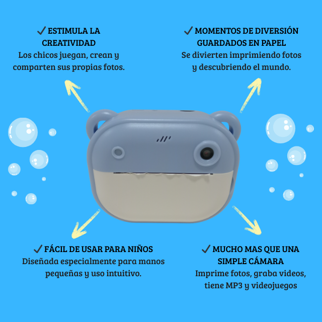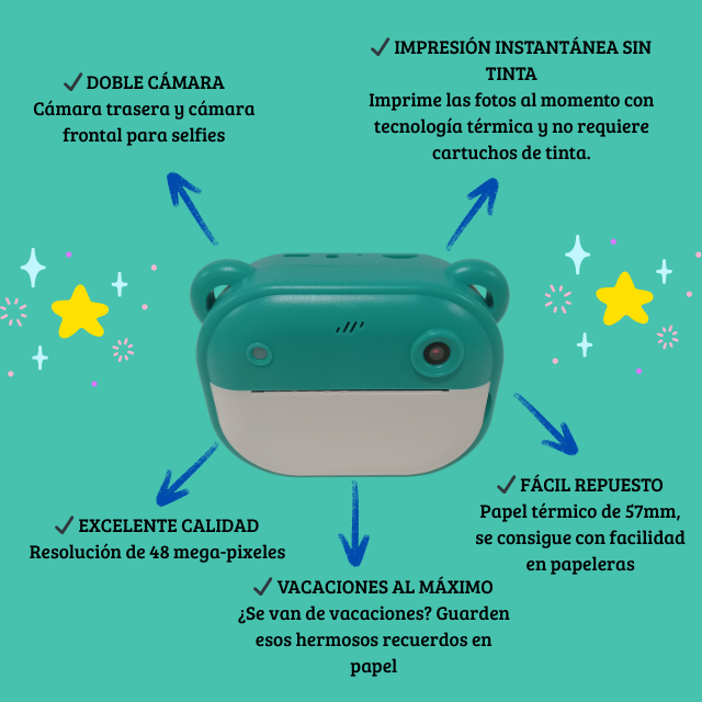 Con esta Cámara van a poder imprimir lindos momentos y guardar las fotos en un álbum o hacer un precioso collage.